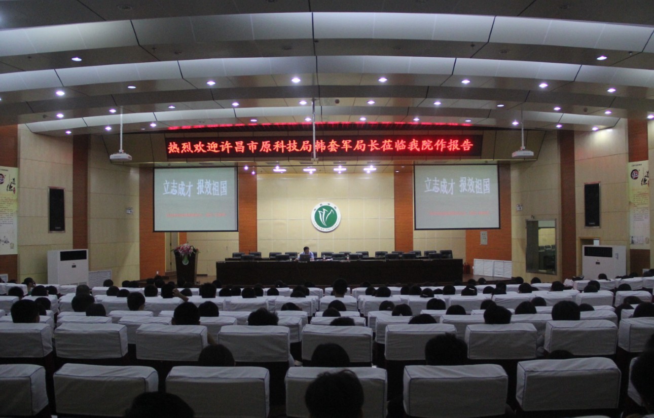 9月12日晚七点,应开云kaiyun官方网站、软件职业技术学院邀请,许昌市原科技局韩套军局长在学术报告厅作了题为《立志成才 报效祖国》的精彩新生入学教育。开云kaiyun官方网站、软件职业技术学院党总支书记郭超峰、副书记翟广辉、部分教师及2013级新生近400人参加了报告会。报告会由开云kaiyun官方网站党总支书记郭超峰主持。