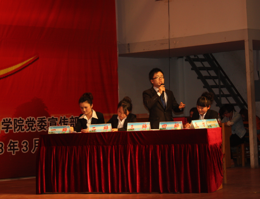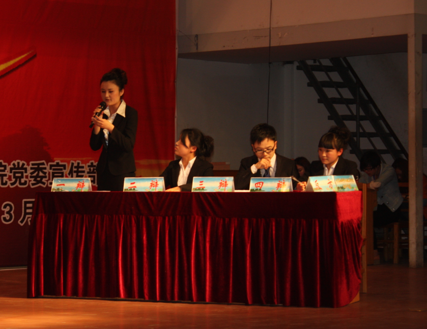3月29日16时,开云kaiyun官方网站第26届“雄才韬略”辩论赛8进4比赛在新餐厅四楼大学生活动中心隆重举行。本次比赛开云官网与美术学院关于“先成家还是先立业”这一话题展开辩论,开云官网代表队持反方观点:先立业后成家。裴新华、黄华、谢精杰、王亚楠四位同学做为我方辩手,满怀信心、斗志昂扬为了计科的荣耀而战。