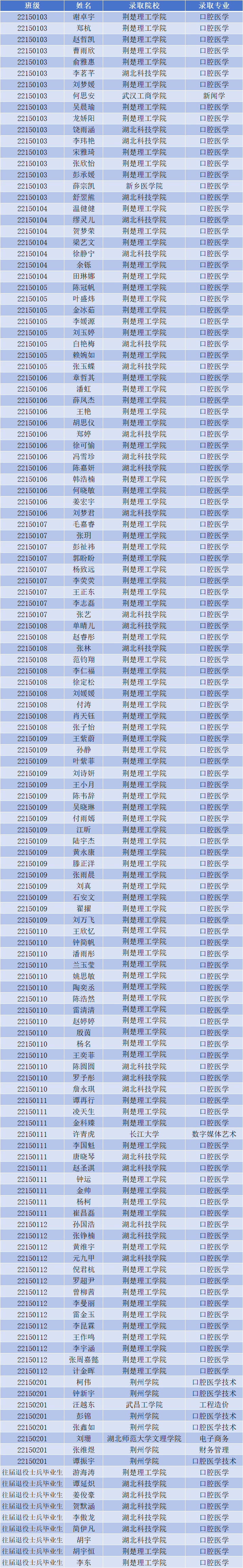 本届共有318名学生报考湖北省普通高校专升本考试,其中138人被湖北科技学院、荆楚理工学院、荆州学院等8所本科院校录取,录取率达43%,录取规模与升学质量再创历史新高!其中,李玮艳同学以总分第二名的好成绩被湖北科技学院录取,赵哲凯同学以总分第四名的好成绩被荆楚理工学院录取,郑航同学英语单科成绩高达97分(百分制),刘梦君、张铮楠同学因为全国专业技能大赛成绩优异,被湖北科技学院免试录取。