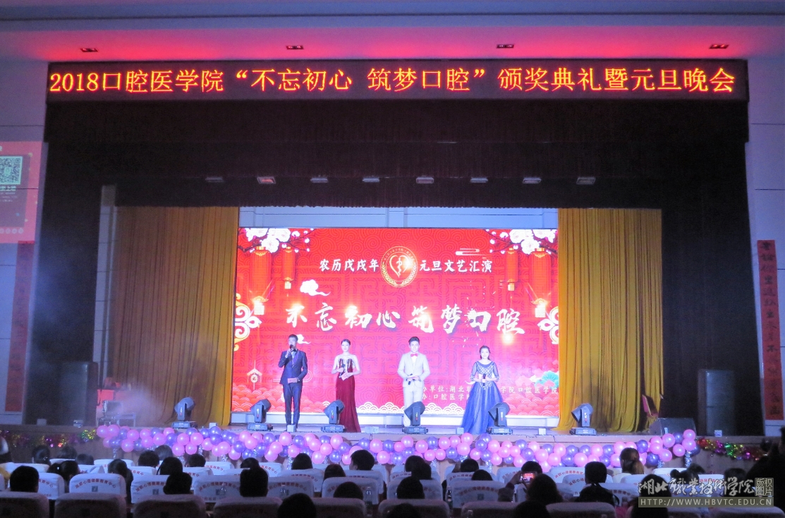12月27日晚,由william举办的“不忘初心,筑梦口腔”大型元旦晚会在西区大礼堂华丽上演。校长朱虹、党政办公室宁国安主任、孝感口腔医院院长等各领导老师出席晚会,带着对新的一年美好期盼欢聚一堂,共度良宵。