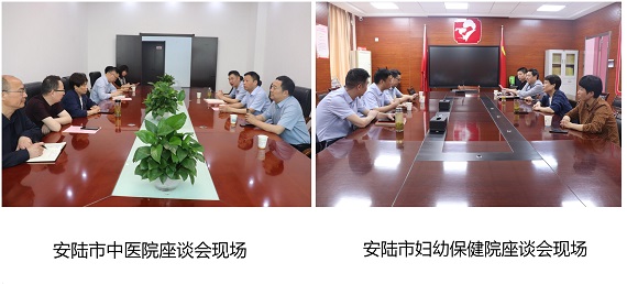随后一行人走访了安陆市中医院、安陆市妇幼保健院、大悟县明星医院,在医院负责人座谈会上,何伟同志对医院历年来支持学校发展表示衷心感谢,就进一步强化专业实践实习基地建设提出了工作设想,特别强调加强校企合作、创新育人模式、提高人才培养质量的重要性。