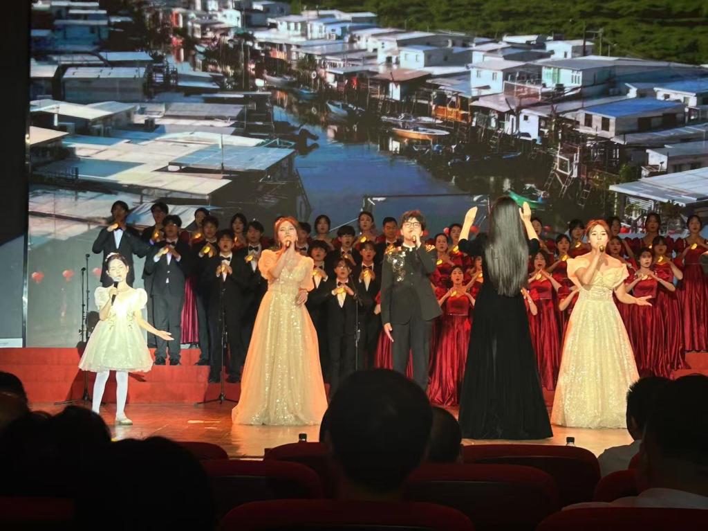 《紫荆花盛开》作为庆祝香港回归25周年的献礼之作,以含蓄温暖的词曲、清澈纯净的童声,深情诠释着香港与内地人民血浓于水的深厚情谊,传递出香港在祖国坚实支持下繁荣稳定的美好图景。随着"日夜相守相望,闪闪星光"的旋律响起,合唱团全体成员挥舞起"星星灯",两名伴舞轻盈入场,与歌声相得益彰。歌曲高潮部分,象征着希望的小女孩以独唱"永远的紫荆花,在爱之下茁壮发芽"惊艳亮相,赢得现场观众热烈掌声。与此同时,旗手上台挥动旗帜,将现场气氛推向最高潮。