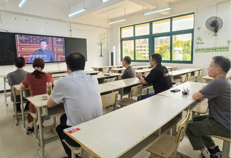 各观看场地爱国主义豪情涌动。广大师生纷纷表示,历史不容忘却,我们要始终牢记先辈们为国家独立、民族解放作出的巨大牺牲和卓越贡献。观礼后,师生展开热烈交流。
