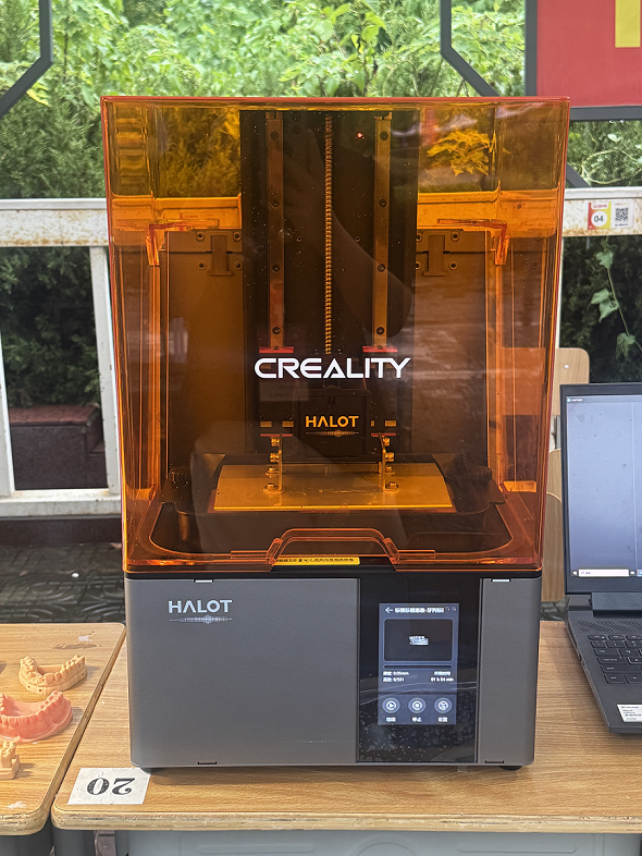 “这是3D打印的个性化种植体模型,能精准匹配患者牙槽骨形态,比传统修复方式更贴合。”在学院迎新现场的“口腔3D打印展示区”,孙博文老师正手持模型,向新生和家长讲解技术原理。透明展柜内,3D打印的正畸矫正器、全口义齿模型整齐排列,旁边的显示屏循环播放着学院实训中心学生操作3D扫描仪、打印修复体的实操视频,让新生可以直观触摸专业前沿。