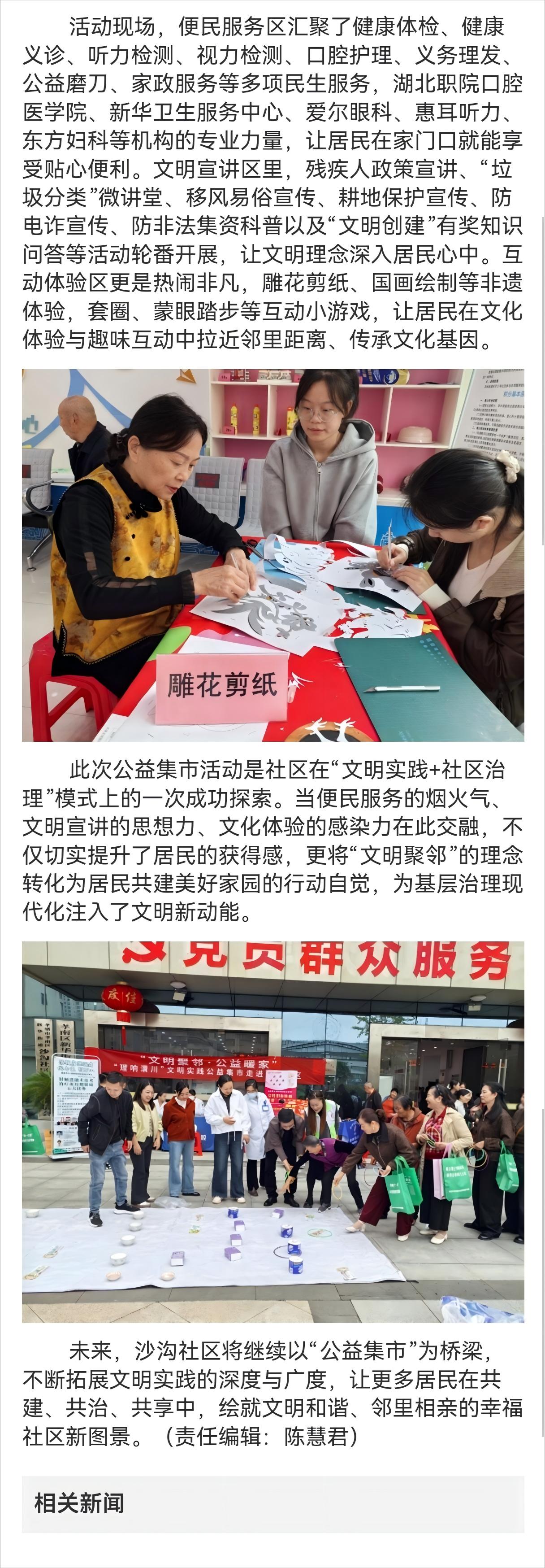 文明聚邻·公益暖家 ——“理响澴川”文明实践公益集市走进新华街道沙沟社区