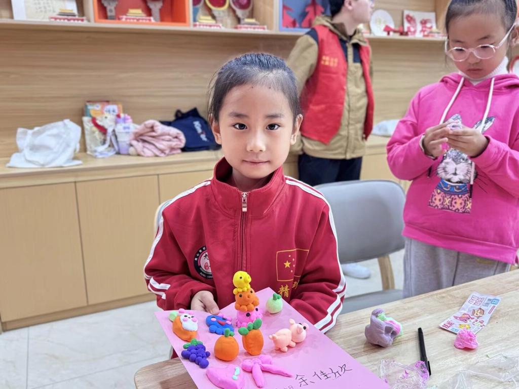 清晨8时,志愿者们准时集合,统一前往社区。抵达后,大家迅速整理场地、检查教具与书籍,确保各环节准备就绪。上午9时活动正式开始,志愿者首先引导孩子们归还此前借阅的书籍与学习用品。随后进入PPT讲解环节,主讲人以生动有趣的方式介绍黏土制作步骤,并不时提问互动,激发孩子们的参与热情。其余志愿者则分工协作,维持课堂秩序、记录活动瞬间。