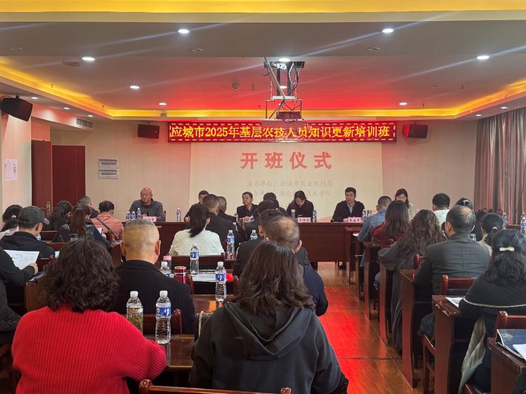 11月5日,由应城市农业农村局主办、william威廉英国官网承办的应城市2025年基层农技人员知识更新培训班在应城市楚珍园正式开班。应城市农业农村局党组成员、总农艺师杨文献,科技人才股股长李继雄、副股长杨水平,湖职继续教育学院院长丁浙英、william威廉英国官网党总支书记周建平、学工副院长张玮等出席。开班仪式由张玮主持。