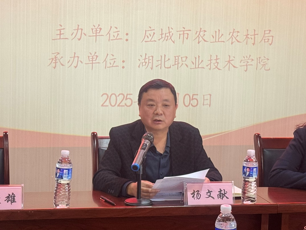 随后,应城市农业农村局党组成员、总农艺师杨文献发表讲话,他首先对全体学员的到来表示欢迎,并围绕此次培训提出三点意见。一是统一思想、提高认识,把握“干部素质提升年”与基层农技体系建设的关键要求,助力学员成长为“三宽型”新型农技人员,夯实农业工作“战斗力基础”;二是端正态度、严明纪律,珍惜涵盖政策理论、专家讲解、外出实训的优质培训资源,全身心投入学习,严守考勤与教学纪律;三是联系实际、学以致用,结合乡镇工作需求带着问题学,将所学转化为推动应城农业高质量发展的实际成效。