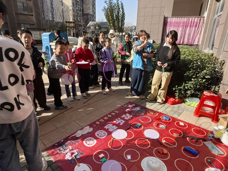 游园会还设有“法治滚滚乐”“法治问答”“法治雕花剪纸”等板块,形成完整法治学习体验链。居民们手持积分卡穿梭各区域,在法院工作人员、剪纸老师、社工与志愿者的共同引导下,边玩边学、边学边记。