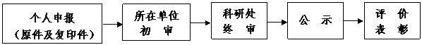 (二)各单位指定专人对本单位所登记内容的真实性进行核实,并计算每人的科研实绩分数,然后将考核结果连同成果原件及复印件一份上报科研处。
