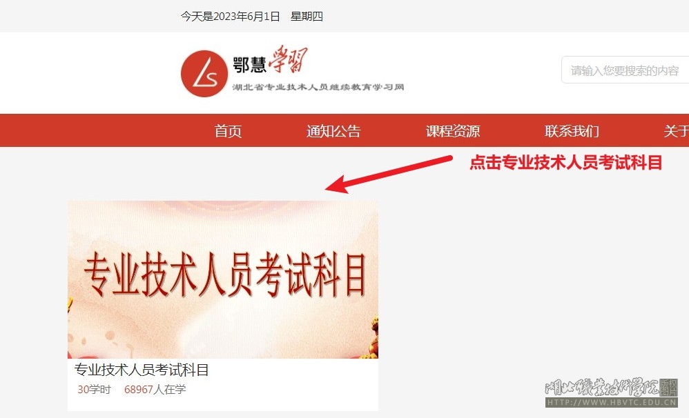 2.进入“专业技术人员考试科目”进行学习。