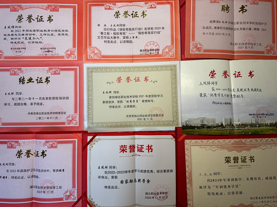 在大学三年里,不论是学习还是日常生活我始终严格要求自己。作为“口腔3+2”班级的一员,我在学习上不敢松懈,一直勤奋刻苦,有着明确的学习目标和积极的学习态度,以自身行动带动全班同学的积极性,大二期间获得了“国家励志奖学金”。在日常工作上,也得到了老师、同学们的认可,在三年里获得了“军训优秀学员”、“优秀团员”、“优秀班学生干部”、“湖北省技能大赛志愿者活动先进个人”、“团校学习优秀学员”等荣誉,这对我而言不仅是一份奖励与认可,更是对我未来学习的督促与激励。