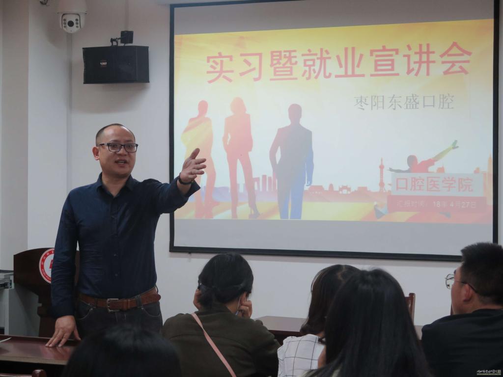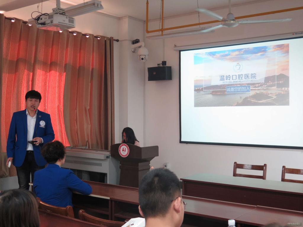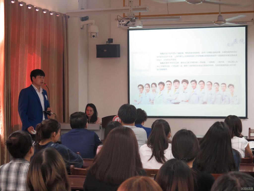 宣讲会伊始,肖主任首先对宣讲嘉宾表示了热烈的欢迎,随后,两家医院代表分别对学生的实习需求、招聘与选拔方式等进行了详细的宣讲,同时结合自己的工作经历分享了他们的就业经验。温岭口腔医院负责人说到,当今医疗形势严峻,社会对医务人员的要求也越来越全面,只有文凭是不够的,应聘者还需具备良好的综合素质,真正做到理论与实践结合,才能更好地适应今后的工作。枣阳东盛口腔医院主讲人还向在场学生详细解读了行业情况,深度分析口腔医学需求类型排名以及医院对于实习人才的需求分析,对william毕业生的实习就业具有实际的指导意义。