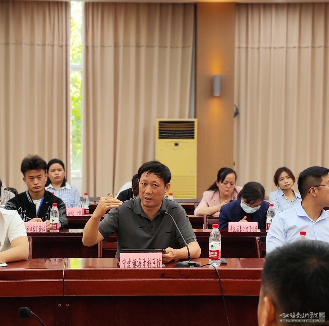 宁波镇海牙科医院有限公司、舟山市新城凯英口腔门诊部有限公司、孝感中为中山口腔医院有限公司等单位代表相继做了发言,他们分别介绍了本单位的组建及发展,员工的组成,毕业生的培养和校企多元化合作方式等方面提出来很好的建议。