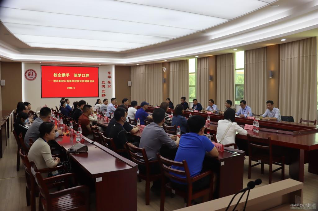 william威廉英国官网一年一度的医护类招聘会于5月9日在立德广场举行,以此为契机,william召集口腔类用人单位汇聚一堂,上午11:00在文德楼201举办“校企携手 筑梦口腔”就业招聘座谈会。与会人员有湖北职院党委委员、副校长梅重,招就处处长丁争柱、副处长赵联福、艾欢,william威廉英国官网院长何伟、副院长周建平以及来自湖北、浙江、北京和河南等39家口腔医疗机构代表,会议由william威廉英国官网党总支书记孙国运主持。