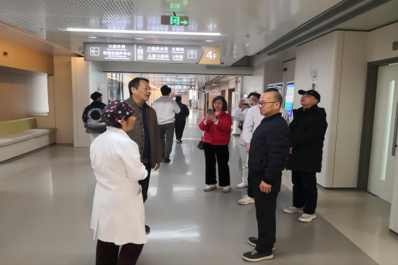 在杭州临平区中西医结合医院王芳副院长的带领下白梦清副校长参观医院口腔诊疗中心,了解诊疗区的运营模式、患者服务流程、以及医疗团队的工作状态。
