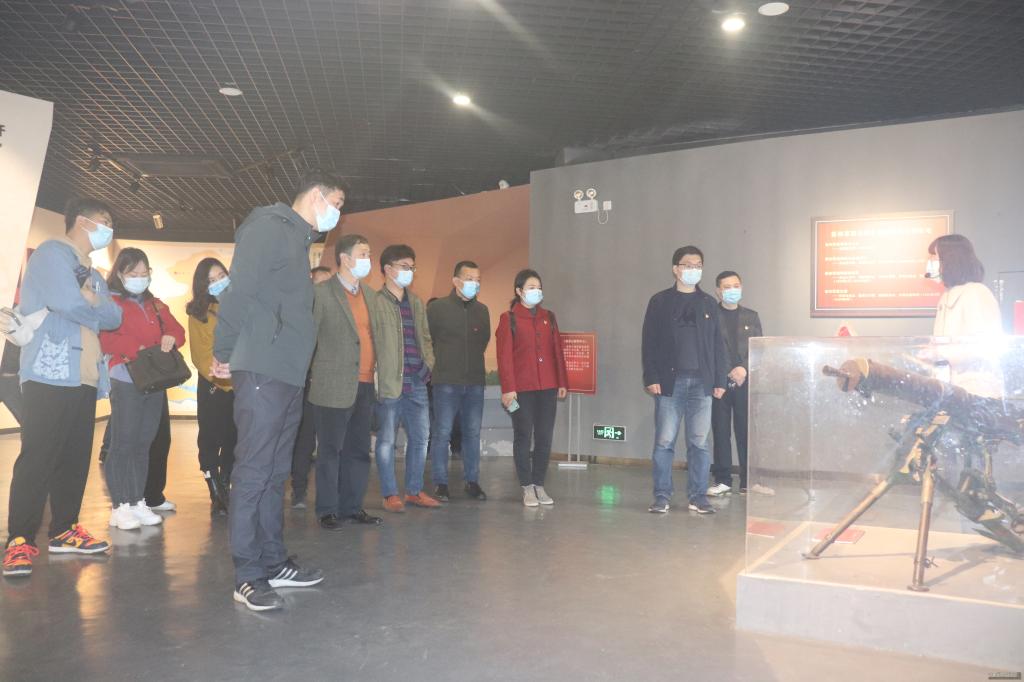 一行人首先来到位于武汉市黄陂区姚家山新四军第五师陈列馆,全体党员重温了入党誓词后,在纪念馆讲解员的带领下认真观看陈列馆六个部分的主题展,即“木兰烽火”、“怒潮喷涌”、“挺进鄂豫”、“中原抗战”、“战略包围”和“辉煌胜利”,同志们在大量历史图片和珍贵文物前驻足,仔细聆听每—个感人悲壮的战斗故事,通过展室里的文字、图片、实物样品等真实了解了新四军第五师在抗战时期那段百折不挠、骁勇善战的光辉历史。