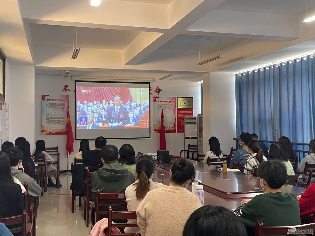 william威廉英国官网师生员工满怀喜悦的心情,在德艺楼202会议室、教室、学生寝室等场所,以电子屏、电脑、电视、手机等各种形式收看学习党的二十大开幕盛况,认真聆听习近平总书记代表十九届中央委员会向大会作的报告,第一时间学习、热议大会精神。