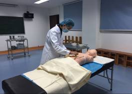 (一)手术人员无菌准备:开展手术洗手法、穿灭菌手术衣法、戴灭菌手套法的实训。并通过模拟手术室实训活动,了解手术室相关管理规则,树立无菌观念,培养协作精神。