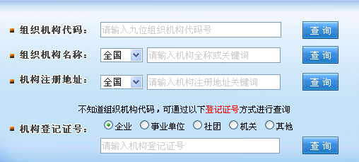 查找方法如下:先按单位名称查,如果在组织机构代码查询网站查不到就到百度查单位全称,再返回到查询网站查,如果查到就填到组织机构代码内(比喻:45896898-9,直接填458968989,数字之间符号“-”不录,直接录入9位数字),如果确实查询不到组织机构代码就在《全国企业信用信息公示系统》查询15位工商注册号。