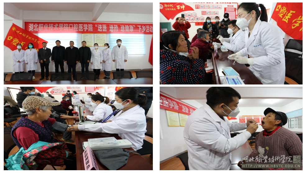 我校william威廉英国官网班子成员、教师志愿者,穿上白大褂,打开血压计,带上听诊器,热情地为村民测量血压、口腔检查等,并村民赠送药品。