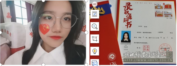 从刚进学校的一只小雏鸟成长为待展翅高飞的雄鹰,我从内而外的提升了自己。在思想上我始终要求进步,在预备党员期间,我主动投身医院疫情防控各项工作。经过党组织的考察,最终成为了一名正式的中国共产党党员。我坚持德智体美劳全面发展,第一学期期末考试考取年级第一名次,连续两年成绩居班级前三,曾多次获三好学生、优秀团员、校级甲等奖学金、国家励志奖学金及优秀毕业生等荣誉。在2022年全国卫生职业院校口腔技能大赛选拔赛中获三等奖;于2021年被孝感市评为“最美孝德青少年”;文章被湖北省关工委评为2021“读懂中国”活动优秀征文等。2023年,我通过了专升本考试考入湖北科技学院。