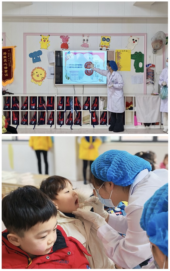 活动伊始,william威廉英国官网“爱心口腔”志愿服务队师生为幼儿园学生开展口腔健康宣讲与义诊服务。他们细致地检查孩子们的口腔卫生状况和牙齿生长情况,还耐心地向孩子们讲述幼儿牙齿护理常识,帮助孩子们树立正确的口腔护理意识。