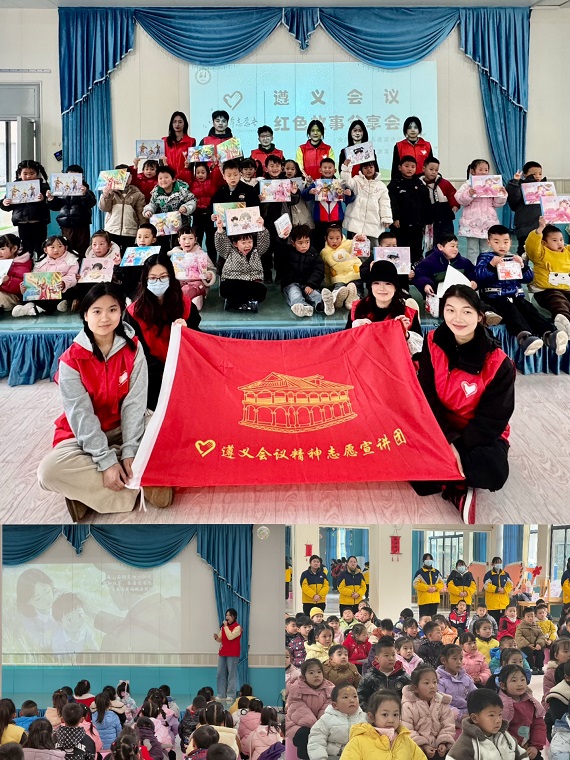 在遵义会议红色精神宣讲环节,william威廉英国官网全国大学生志愿宣讲团“遵”道“毅”行志愿宣讲团成员以生动的PPT和视频,向幼儿园教职员工深入宣讲遵义会议精神,让红色精神在校园中传递。他们还为小朋友们精心准备了遵义会议小故事,通过讲述这些趣味小故事,在孩子们心中播下红色的种子。