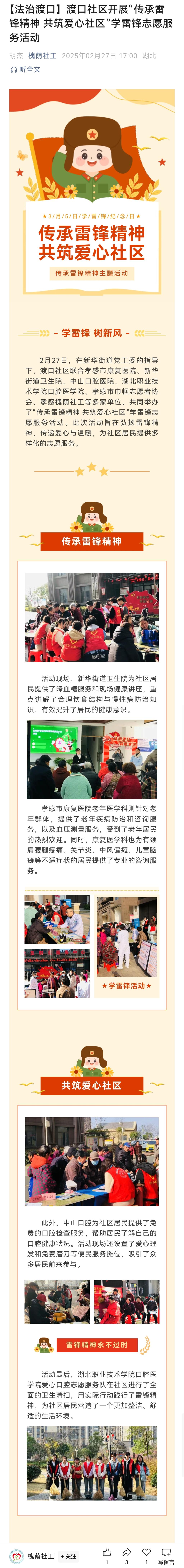 【法治渡口】渡口社区开展“传承雷锋精神 共筑爱心社区”学雷锋志愿服务活动
