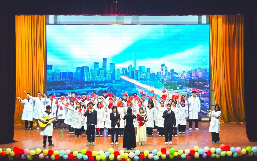 比赛中,各参赛队伍各展风采。"五星红旗迎风飘扬,胜利歌声多么嘹亮...随着24级口腔7班的深情开唱,红歌赛正式拉开帷幕。11个班级依次登场,《不忘初心》的大气磅礴、《少年中国说》的铿锵有力、《我爱你中国》的温暖抒情,在师生们的创新演绎下焕发出新的生命力。24级口腔4班的《紫荆花盛开》,演员们用生动的肢体语言赢得现场阵阵掌声;24级口腔9班演绎《不忘初心》,纯净和声传递青春力量。整个比赛现场,歌声、掌声、欢呼声交织在一起,构成了一曲充满激情与力量的乐章,将对红色精神的传承与敬意展现得淋漓尽致。