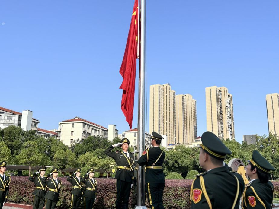 迎着清晨第一缕阳光,立德广场沐浴在金色朝晖之中,国旗护卫队迈着铿锵步伐护送国旗入场。伴随着激昂的《义勇军进行曲》,五星红旗冉冉升起,全体师生庄严肃立,齐唱国歌,嘹亮的歌声在广场上空久久回荡。